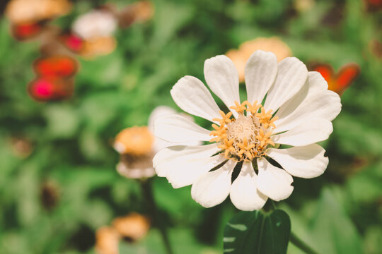 - Zinnia acerosa, originaria del Messico e del Sud-ovest degli USA, pianta perenne, alta fino a 60 cm, con fiori bianchi simili a margherite